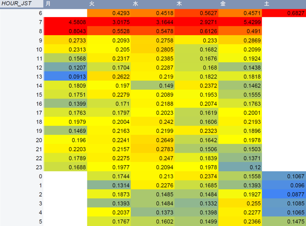 - 縦軸:時間帯(日本時間・HOUR_JST)